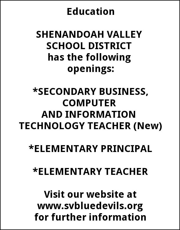 Jun 20, 2024. Shenandoah Valley School District Education Jobs from Republican Herald